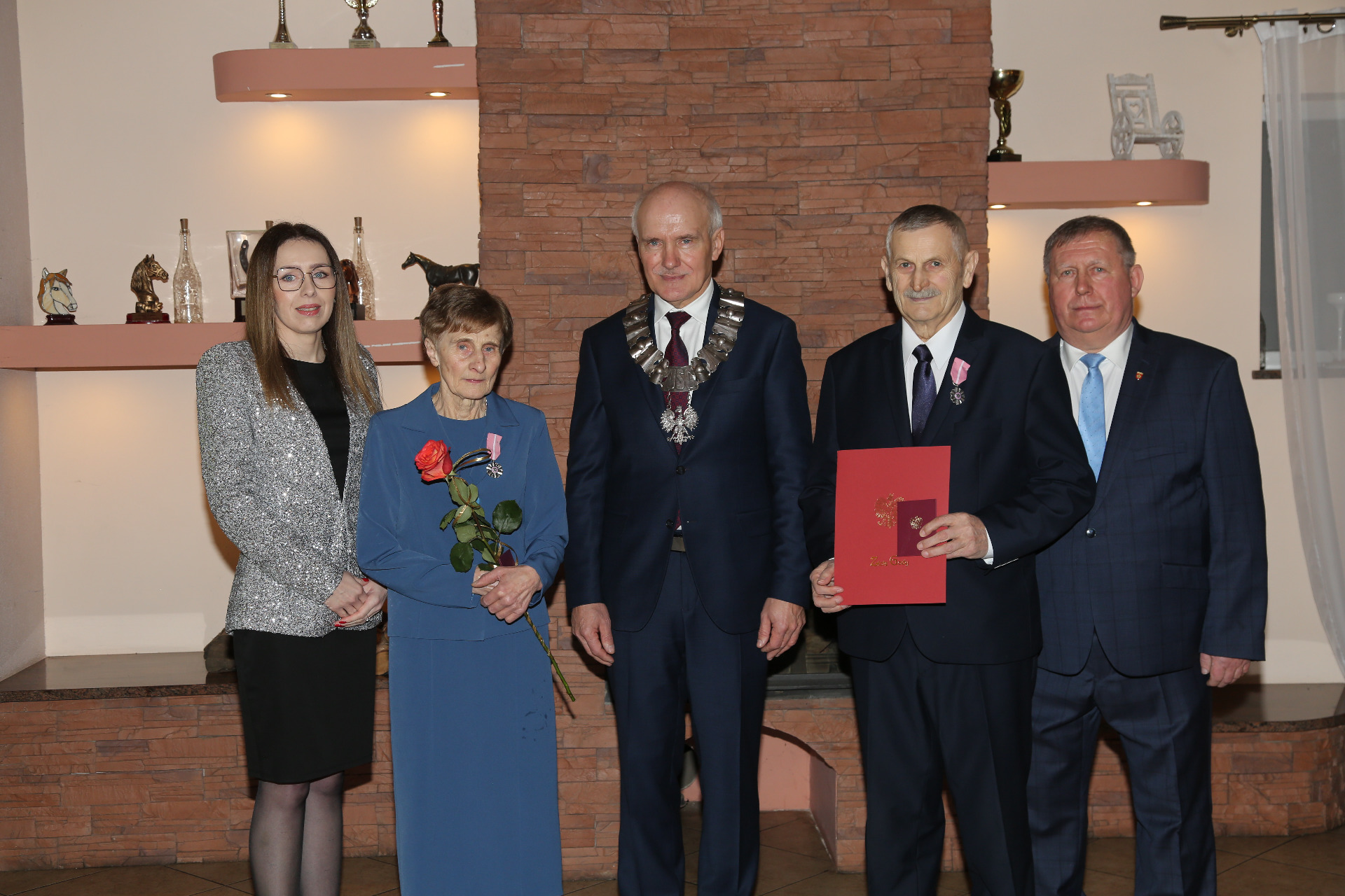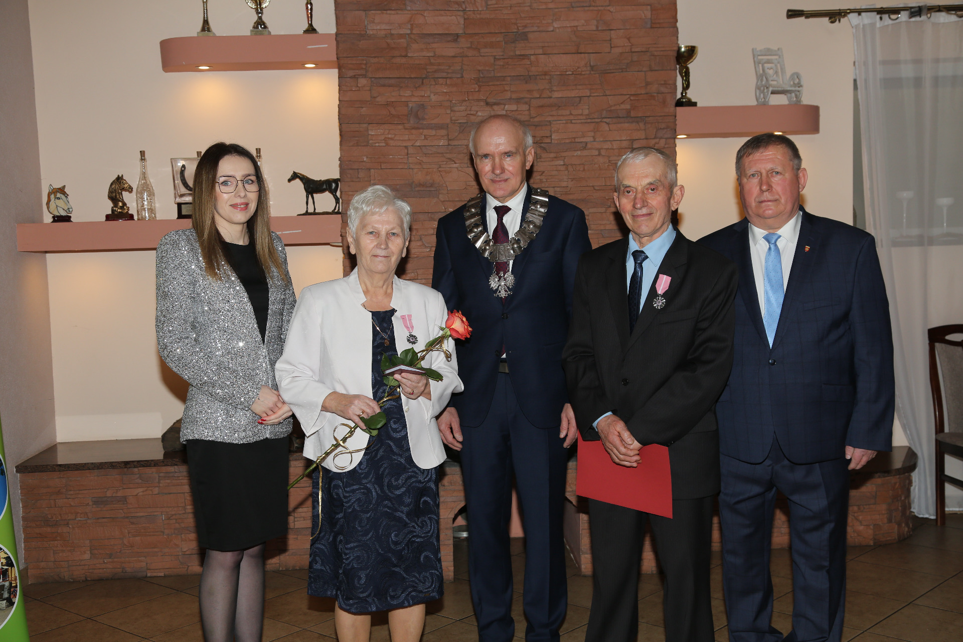 Uroczystość rozpoczął Burmistrz Gminy Zagórów – Pan Roman Kulterman, który pod adresem dostojnych Jubilatów skierował słowa uznania i podziękowania za godne i długie pożycie małżeńskie oraz za piękny przykład dla młodego pokolenia. Następnie w imieniu Prezydenta Rzeczypospolitej Polskiej Burmistrz dokonał aktu dekoracji Jubilatów, zaś Przewodniczący Rady Miejskiej Zagórowa – Pan Ryszard Sikorski wręczył legitymacje. Wręczono również listy gratulacyjne od władz samorządowych Gminy Zagórów, kwiaty oraz okolicznościowe upominki. Uroczystość uświetnił występ muzyczny jednego Jubilatów – Pana Andrzeja Słowińskiego.